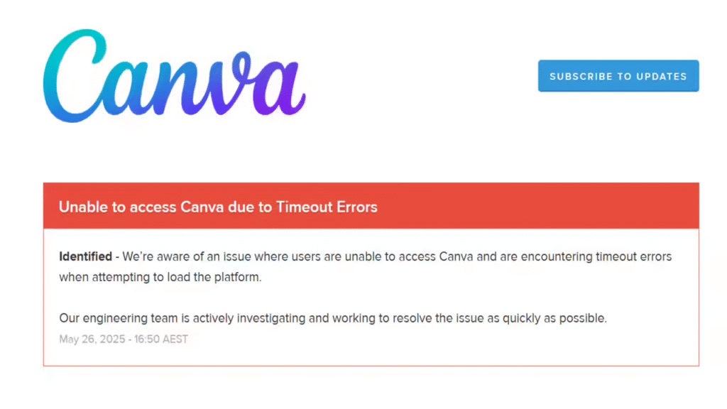 Canva occasionally rolls out backend upgrades, which may cause brief disruptions.
