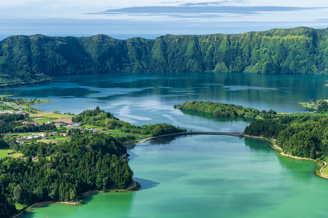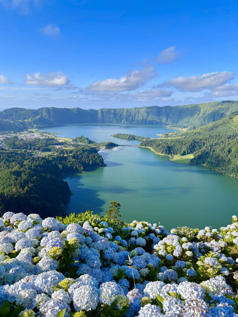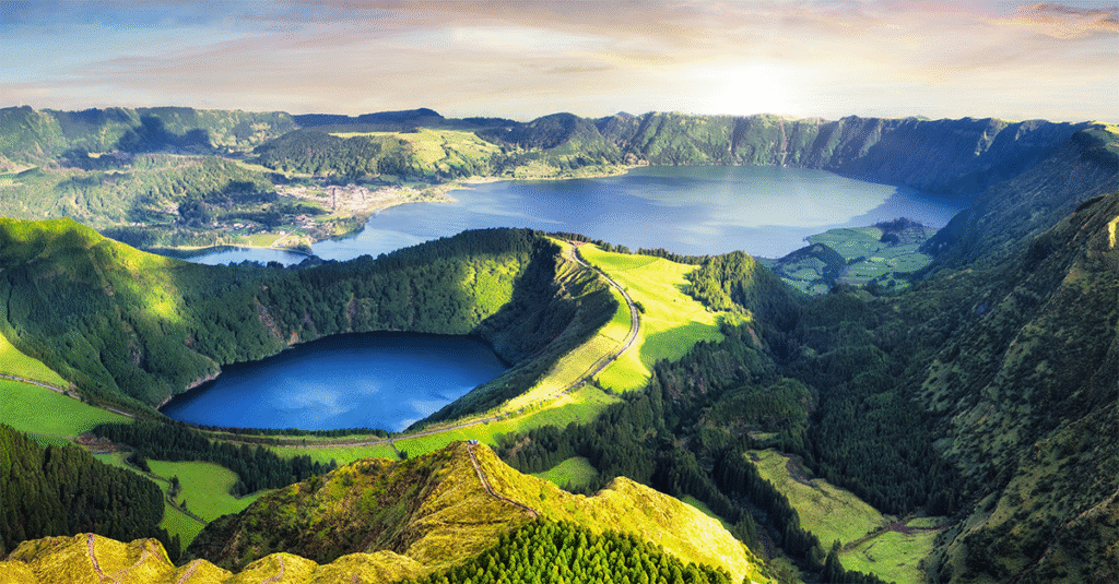One of the most famous spots is Sete Cidades on São Miguel, where twin lakes sit inside a massive crater. It’s one of those places that genuinely looks better in real life than in photos.